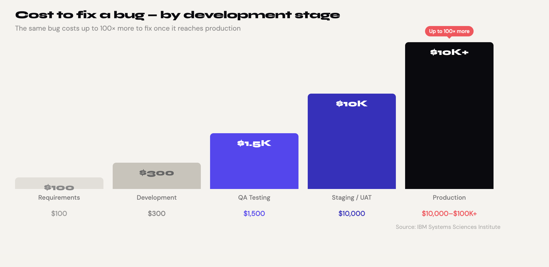 A production bug costs 10x–100x more to fix than one caught during testing. Here's what it actually costs your team — and how to stop it from happening.